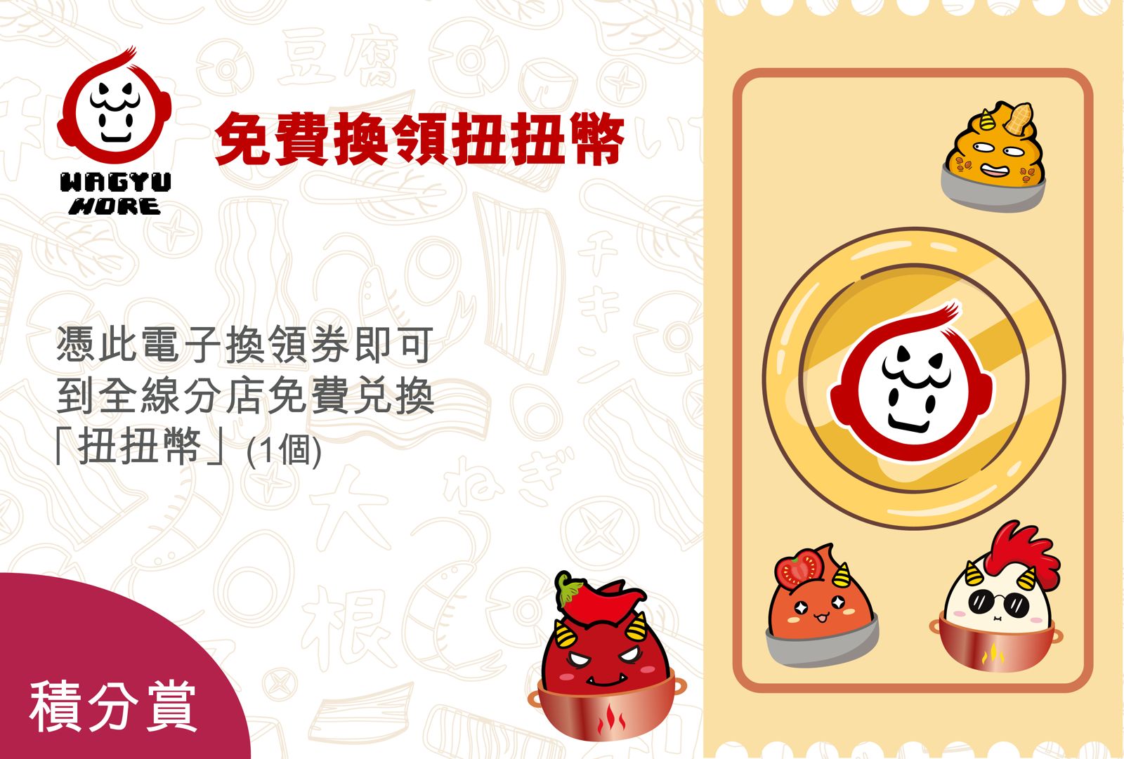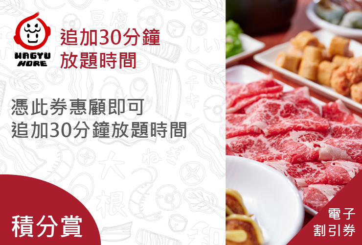 每次消費只可使用一張電子割引券或積分換領一項獎賞,不接受分單結帳